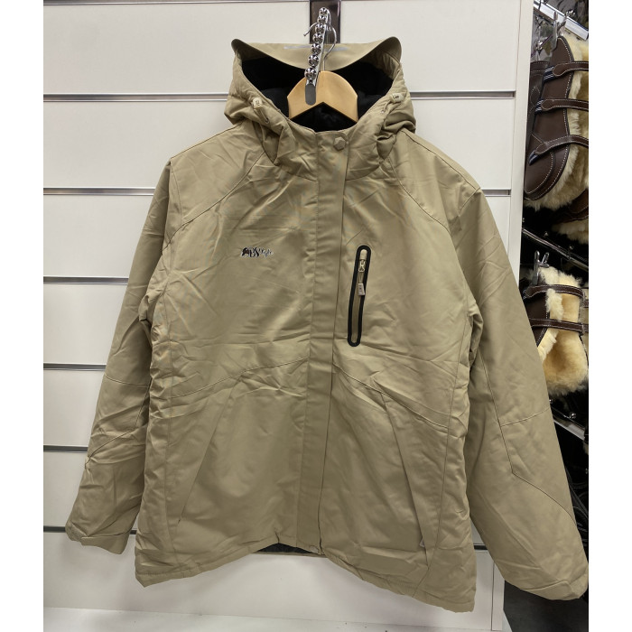 Une veste chauffante déperlante avec de grandes manches et une capuche, taille femme (cintrée).